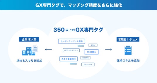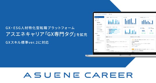 アスエネ株式会社(本社:東京都港区、代表取締役CEO兼COO:西和田 浩平、以下「当社」)が提供するGX・ESG人材特化型転職プラットフォーム「ASUENE CAREER」は、カーボンニュートラルへの移行に向けGXリーグ内のGX人材市場創造が策定した「GXスキル標準ver.2」に基づき「GX専門タグ」を追加しました。「GX専門タグ」は、GXに関するスキルを言語化し、350項目以上に分類・設定し、より精度の高いマッチングを実現します。企業のGXビジネスや脱炭素経営を支える人材のマッチング精度の向上と採用工数削減を図り、GX人材市場のさらなる拡大を目指します。