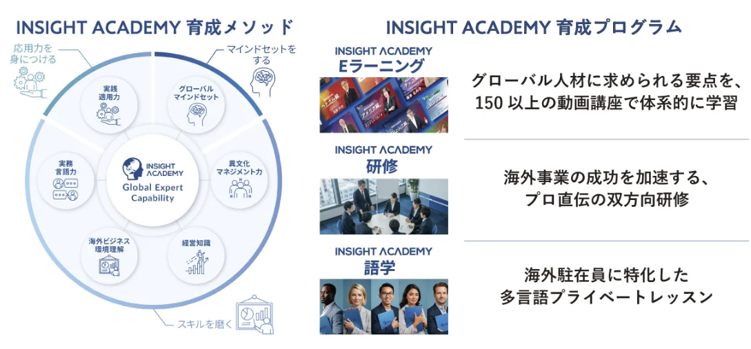 インサイトアカデミーは、1000社以上の海外事業展開を支援するコンサルティング会社サイエストのグループ会社で、グローバルビジネスの成功に必要な人材について熟知している。