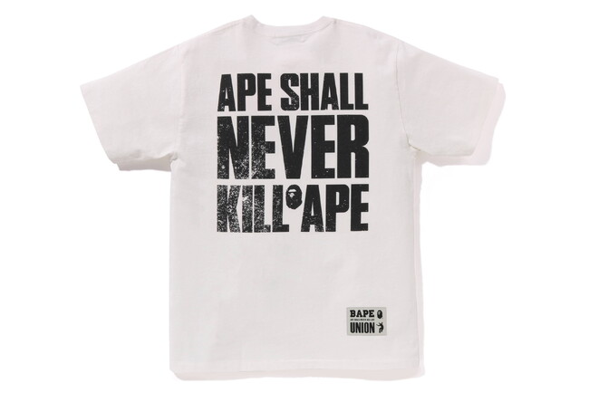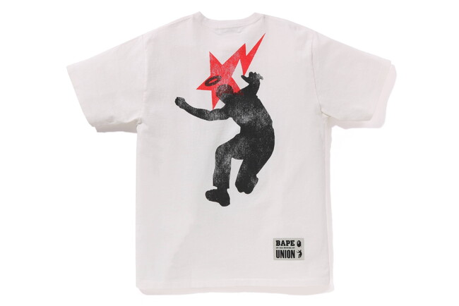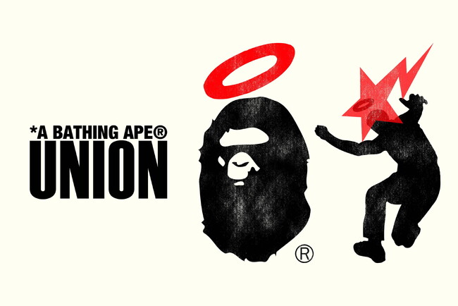 2021年以来、2度目のコラボレーションとなる今回は、BAPE(R)︎の「APE HEAD」とUNIONの「FRONTMAN」という両ブランドのアイコンを特別にアレンジ。BAPE(R)︎のスターモチーフ「STA」と「FRONTMAN」の頭の上にある光輪をチェンジして、ユニークかつ今回だけの希少なアイコンが誕生。