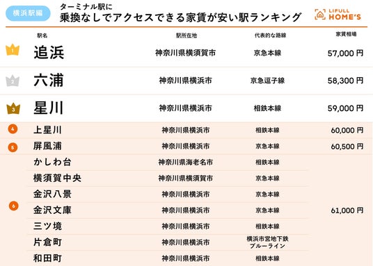 - 【横浜駅】1位は5.7万円の「追浜」京急本線と相鉄本線が独占!