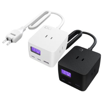 デスクにピッタリなメガネケーブル付き電源タップ。ACコンセント×3・USB-C ×2・USB-A ×1搭載。充電状況が一目でわかるディスプレイ付き。