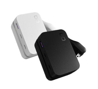 缶コーヒーサイズの持ち運びに便利な、USBポート付き電源タップ。