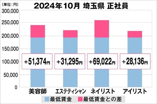 埼玉県の美容業界における採用時給料に関する調査結果 (正社員)2024年10月美プロ調べ