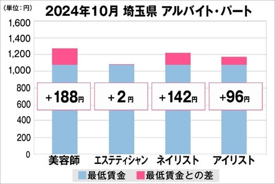 埼玉県の美容業界における採用時給料に関する調査結果 (アルバイト・パート)2024年10月美プロ調べ