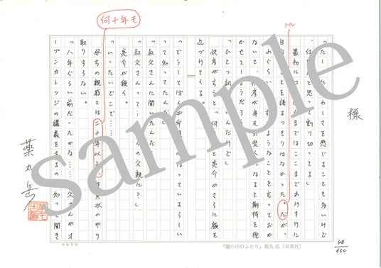 本書を購入いただき、物語の感想と必要事項をご回答のうえ応募いただいた方の中から為書き入りの生原稿1枚を100名様にプレゼントいたします。