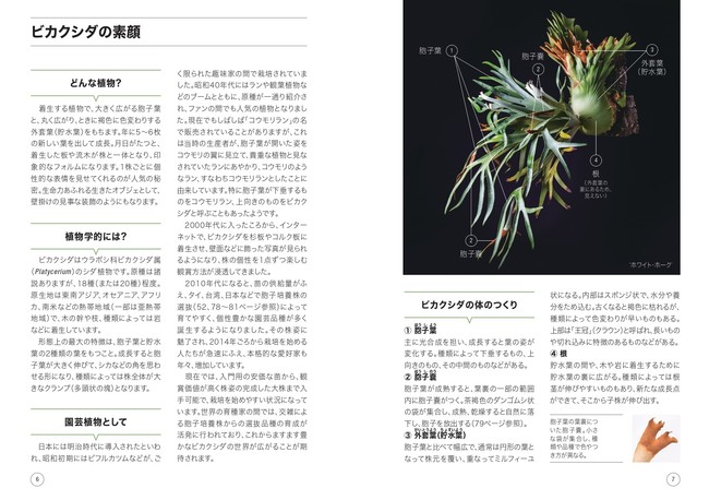 ◆「ビカクシダ図鑑」では大きめの写真を配し、迫力とともにディテールの面白さも堪能
