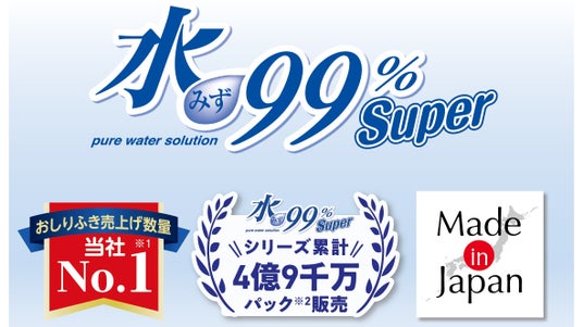 「水99%Super」は不純物を徹底的に除去した超純水を使用し、さらに拭き取った後にベタつきが残らない独自の処方で開発された赤ちゃんの肌に優しい商品です。