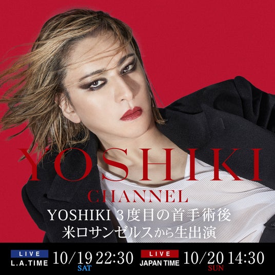 現地時間10月8日(火)に、米カリフォルニア州ビバリーヒルズのシダーズ・シナイ・メディカルセンター(Cedars-Sinai Medical Center)で、自身三度目の大規模な手術を行い、前回と同様に頸椎に人工椎間板を挿入したYOSHIKIが、術後初めて生放送に出演する。※本人の体調面を考慮し、急遽キャンセルになる場合があります。