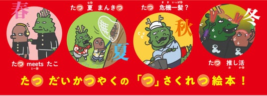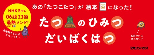 『たつこたつ』は、NHK Eテレで放送中の5分番組『0655』『2355』で2024年の干支・辰をテーマにして生まれた曲です。従来の「辰」のかっこいいイメージを覆し、メインキャラクターの「辰ひろし」はこたつに入ってだらだらしたお正月を過ごしています。こたつからなかなか出ようとしない辰のアニメーションと、「たつこたつ たつこたつ♪」と「つ」で韻をふんだ歌詞、ロックなサウンドはいちど耳にしたら忘れられないと、こどもから大人まで大人気の楽曲となりました。番組初の絵本となる本作では、これまで謎に包まれていた主人公「辰ひろし」の秘密(ひみつ)が大爆発(だいばくはつ)!辰と親友のたこ「柴田こーへい」との奇跡の出会いが描かれるほか、辰一家も登場します。