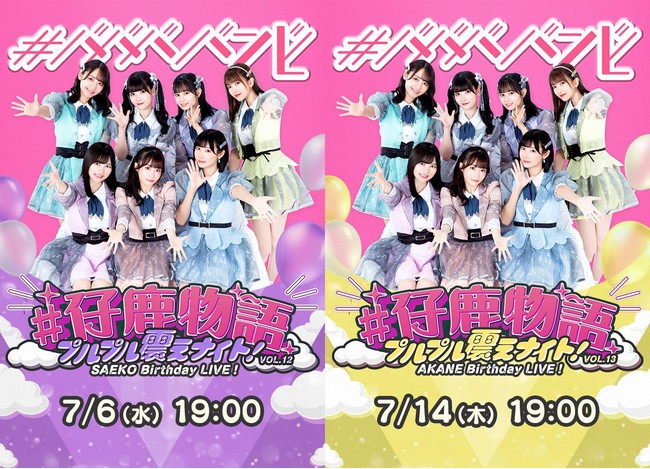 動画配信サービス「Paravi」では、7月6日(水)19時より新宿BLAZE(東京都新宿区)で開催される7人組アイドルグループ「#ババババンビ」近藤沙瑛子の生誕ライブ『「#仔鹿物語」プルプル震えナイト!VOL.12 SAEKO Birthday LIVE!』と、7月14日(木)19時から開催される、吉沢朱音の生誕ライブ『「#仔鹿物語」プルプル震えナイト!VOL.13 AKANE Birthday LIVE!』の生誕祭を2週連続で独占LIVE配信することが決定した。グループ恒例の生誕ライブは、主役の近藤沙瑛子や吉沢朱音自らが衣装やセットリストなどの演出を手掛ける。