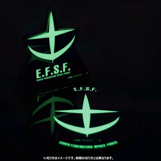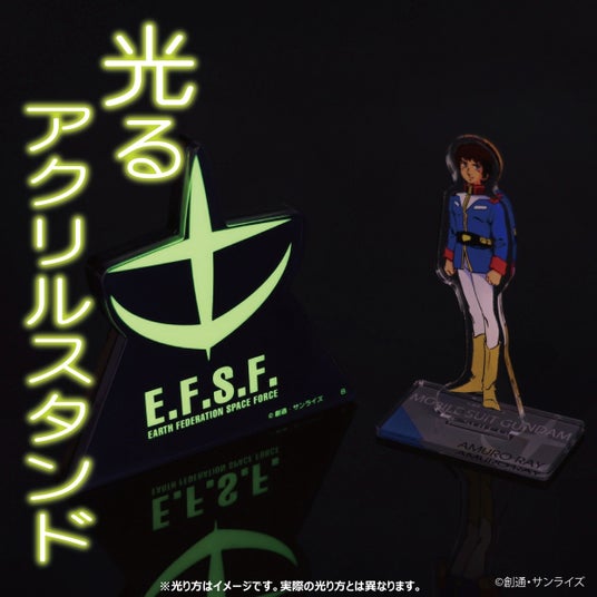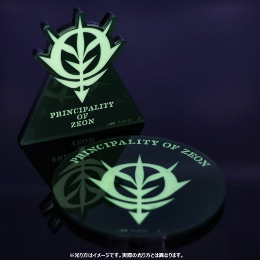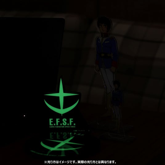 本商品は、アニメ『機動戦士ガンダム』、劇場版アニメ『機動戦士ガンダム 逆襲のシャア』の「光るアクリルスタンド」、「光るアクリルプレート」になります。マークや文字の背景に「蓄光素材」を使用することで、暗闇で光るギミックが楽しめるシリーズです。