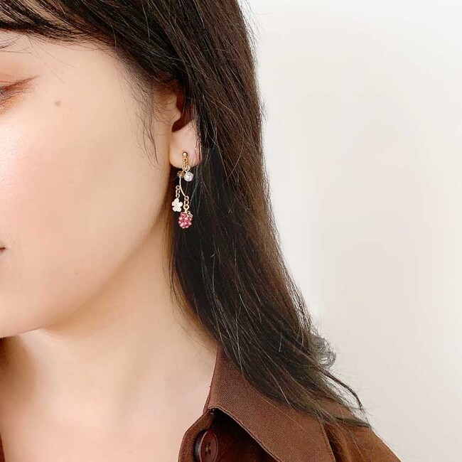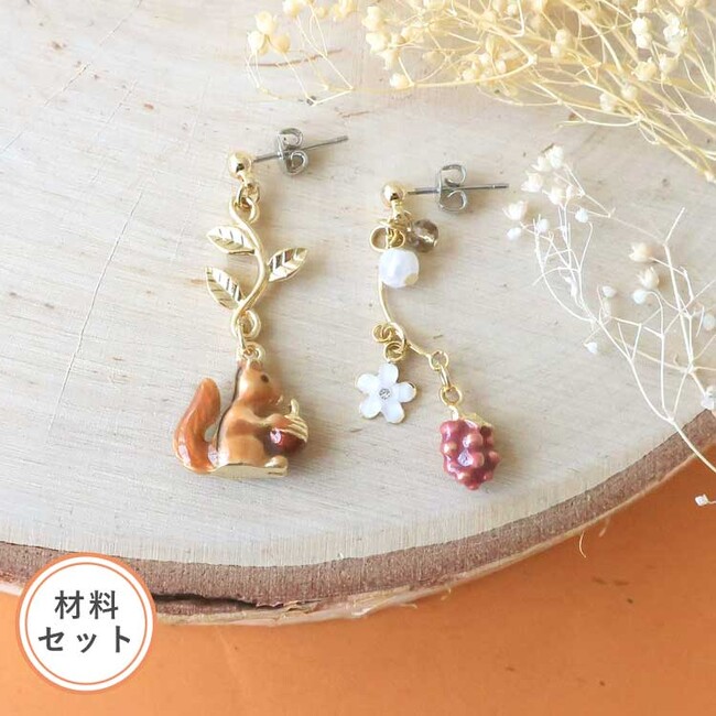 小ぶりでかわいいリスとぶどうのチャームを使ったピアスを作ることができる、材料セット新作が発売となりました。