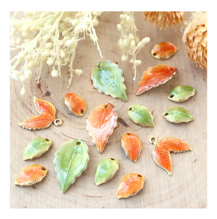 表の部分をエポ加工でぷっくりと仕上げた、カラフルなリーフ型メタルパーツ。