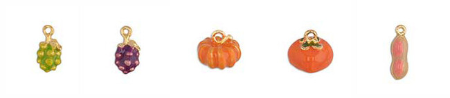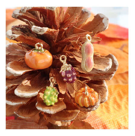 ぶどうや柿、かぼちゃなどおいしそうな秋の味覚の食材モチーフチャームもございます。