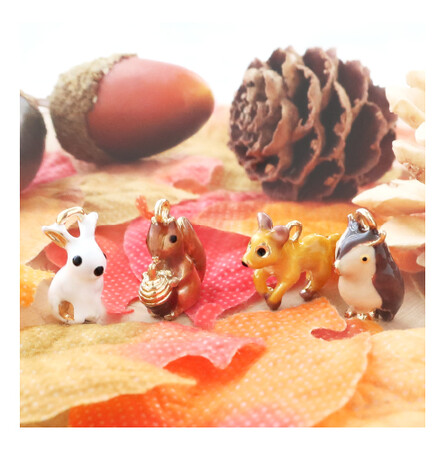 秋の野原がよく似合う、うさぎやキツネのかわいいモチーフチャーム。