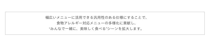 代替食や除去食対応による別調理の負担を軽減でき、「みんなで一緒に、美味しく食べる」をコンセプトとしたアレルゲンフリーの業務用フレークシリーズです。アレルゲン28品目(※国内で表示を義務付けるもの・表示を推奨するもの)不使用のため、学校給食用として安心してお使いいただけます。