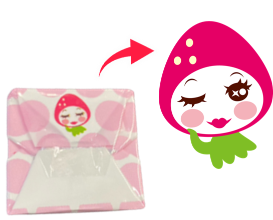 デザインは、キャラクターの口が「り」「ん」「ご」になっています。