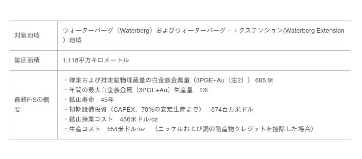 ・南アフリカ共和国ウォーターバーグ白金族プロジェクト最終フィージビリティ・スタディを発表(2019年10月23日)
