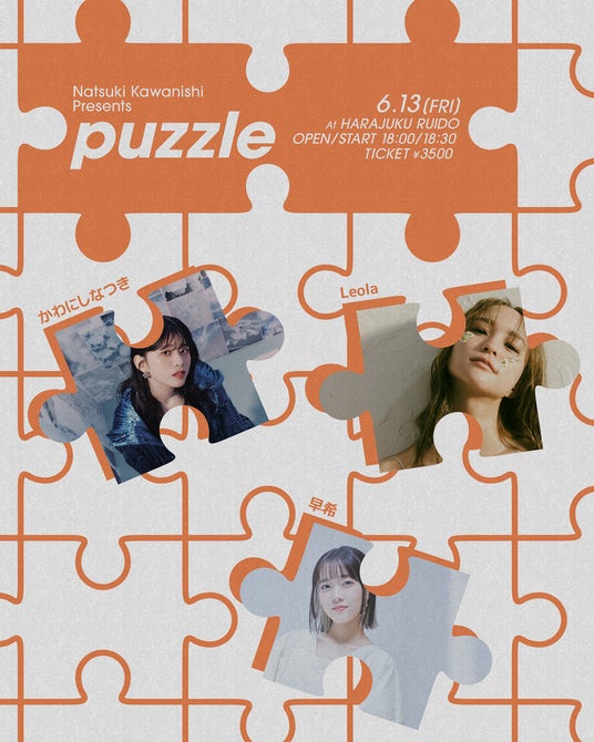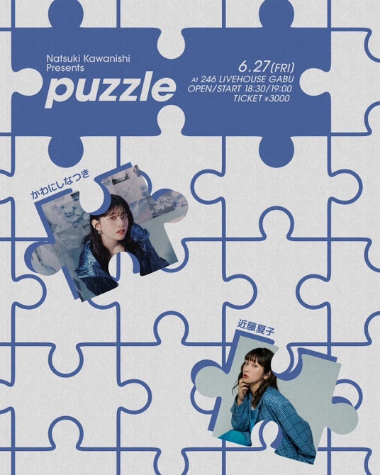 かわにしなつきは、6月13日(金)に原宿RUIDOにて、6月27日(金)に大阪246ライブハウスGABUにて主催ライブ「puzzle」を開催する。チケットは各プレイガイドにて発売中。