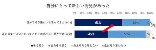 グラフからは「自分でぜひ来たいと思ってきた」という子どもの方が、より高い体験効果があったことがわかります。