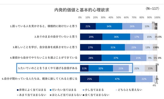 子どもの「内発的価値(※3)や「基本的心理欲求(※4)」について聞いた質問(※5)の結果が以下です。