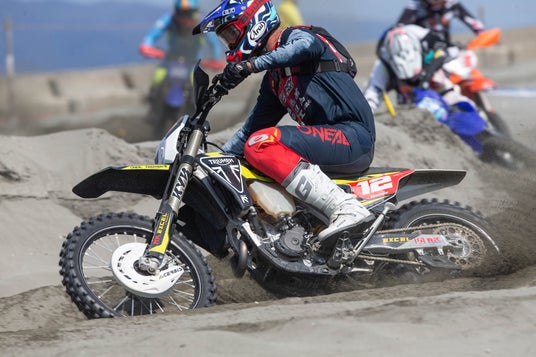 この大会は、時速100kmを超えるハイスピードなビーチストレートと、深い砂に刻まれた轍、さらに難易度の高い人工セクションが組み合わさる、国内でも屈指の過酷なサンドレースです。この舞台で、トライアンフの新型エンデューロモデルTF 250-Eが並み居る450ccクラスのマシンを相手に勝利を収め、国内レースにおける歴史的な一勝を記録しました。