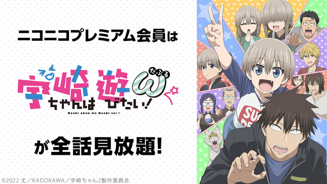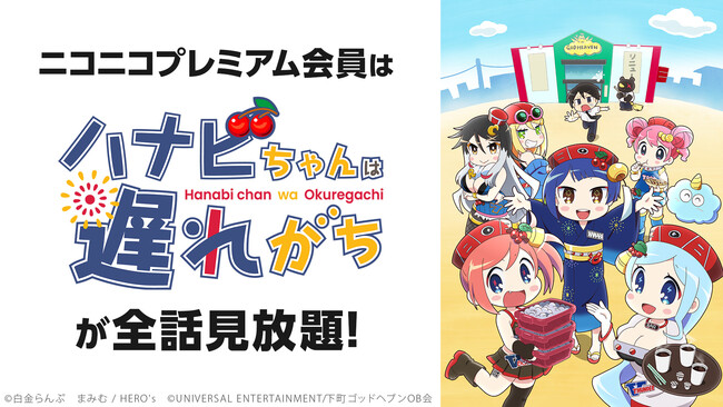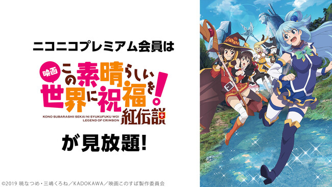 また10月から引き続き「5億年ボタン【公式】~菅原そうたのショートショート~ 」「ハナビちゃんは遅れがち」「うたわれるもの 二人の白皇」「宇崎ちゃんは遊びたい!ω」「4人はそれぞれウソをつく」「アキバ冥途戦争」「Do It Yourself -どぅーいっとゆあせるふ-」「アークナイツ【黎明前奏/PRELUDE TO DAWN】」「うまゆる」「映画 この素晴らしい世界に祝福を!紅伝説」「劇場版 艦これ」「ひぐらしのなく頃に卒」「私に天使が舞い降りた!」「ガールズ&パンツァー」「ガールズ&パンツァー これが本当のアンツィオ戦です!」「ガールズ&パンツァー 劇場版」のアニメ19作品と、「後宮の烏」のニコニコ生放送特番のニコニコプレミアム会員見放題を行います。