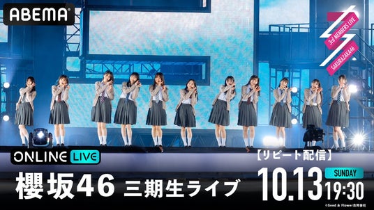新しい未来のテレビ「ABEMA(アベマ)」は、「ABEMA PPV ONLINE LIVE(アベマ ペイパービューオンラインライブ)」にて、人気アイドルグループ・櫻坂46の三期生メンバーによる『櫻坂46 三期生ライブ』を、2024年10月9日(水)18時30分より生配信することを決定いたしました。