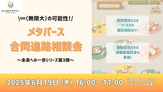 株式会社NIJIN(本社:東京都江東区、代表取締役:星野達郎)が運営する不登校オルタナティブスクール『NIJINアカデミー』は、キャリア教育「未来への一歩シリーズ」の第3弾として、2025年6月19日(木)にオンラインイベント「進路相談会」を開催します。