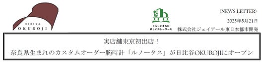 JR有楽町駅と新橋駅間の鉄道高架下に位置する商業施設「日比谷OKUROJI(オクロジ)」に奈良県から生まれたカスタムオーダー腕時計ブランド「ルノータス」が2025年6月7日(土) にオープンします。