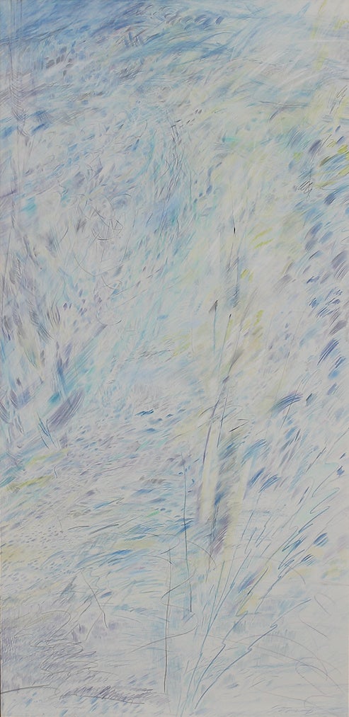 山の中の風景を描いた作品です。山は、描きたくなる線がどんどん沸いてくるモチーフでした。山へ行きスケッチを重ねながら、観察にとどまらずに自分がどういう線を引くか、どういう空間にしていくかに踏み込んで展開していけた作品だと思います。