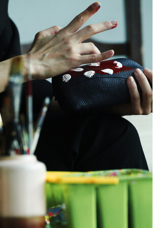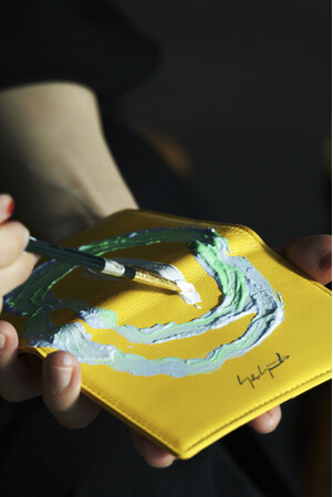 SUMIREがdiscord Yohji Yamamotoのバッグに絵画を描いたピエス・ユニック(一点物)と、選ばれた2つのアートワークに彩られたスモールレザーグッズで構成されるカプセルコレクション。