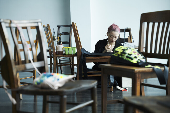 渋谷PARCO 2F、Ground Yストアのフロント・ウォールに、SUMIREがペインティングワークを描くライブアートパフォーマンスを実施。俳優・モデル・アーティスト──様々な顔を持ち、渋谷PARCO50周年に合わせた特別なプロジェクトとして、discord Yohji Yamamotoのバッグコレクションや、Ground Yとコラボレートしたコレクションを発表するSUMIRE。迷いなく描かれる澄んだ絵画がGround Yストアをジャックする。