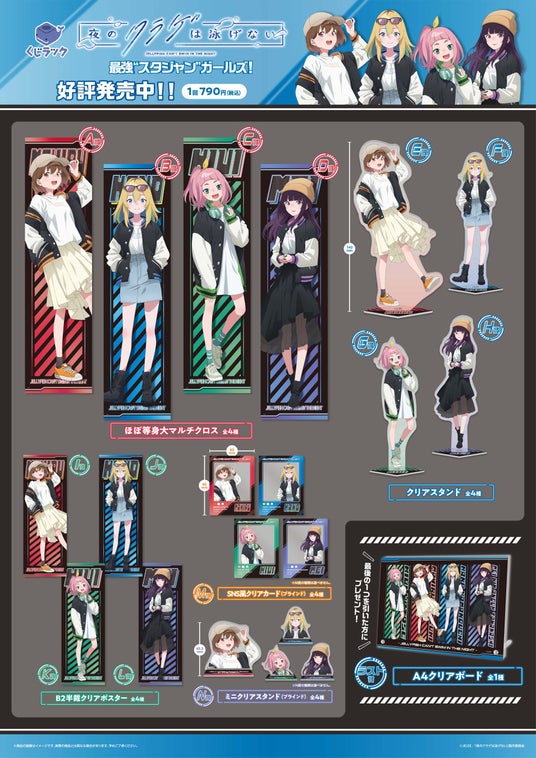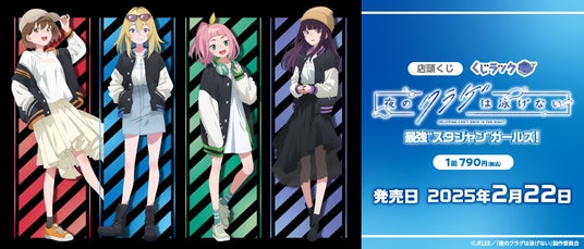 カルチュア・エンタテインメント株式会社は、「夜のクラゲは泳げない」とコラボレーションした、はずれなしのリアルくじ「くじラック」を、2025年2月22日(土)より発売いたします。賞品は最強”スタジャンガールズ!”がテーマの描き下ろしを使用した、ほぼ等身大マルチクロスやクリアスタンドなど全5アイテム(20種)がラインナップ。さらに最後のくじ購入者にはラスト賞として、A4サイズのアクリルパネルをご用意しております。