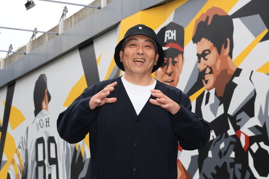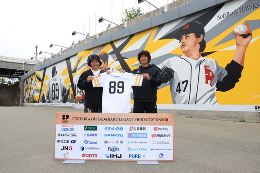 2026年4月17日、みずほPayPayドーム福岡の外周1階スーパービッグウォール前にて、「FUKUOKA OH SADAHARU LEGACY PROJECT」の一環として完成したウォールアートをお披露目しました。城島健司CBOとアート制作者の澁谷忠臣さんが、制作への思いや背景を語りました。ウォールアートには王貞治氏とホークスをけん引してきたOBたちが描かれています。また、同デザインのグッズも発売。グッズと共にドームの新たな象徴としてホークスの歴史と伝統を体感してください。