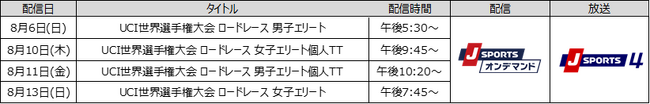 スポーツテレビ局、株式会社ジェイ・スポーツ(本社東京都江東区、代表取締役社長 長谷一郎、以下「J SPORTS」※1)は、8、9月も充実のラインアップでサイクルロードレースを放送いたします。また、PC、スマホ、タブレットで見られる「J SPORTSオンデマンド」※2でも放送同様にお届けいたします。国別対抗の「UCI世界選手権 ロードレース中継」を皮切りに、グランツール最終戦となる「ブエルタ・ア・エスパーニャ」全21ステージ、そしてJ SPORTS渾身のオリジナル番組「ツール・ド・フランス21日間の裏側」というファン必見の番組が満載です。8月以降も世界中のサイクルロードレースをお届けするJ SPORTSにぜひご期待ください。