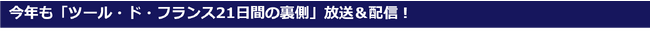 世界最大の自転車レースの裏側に迫るべく、主催者より貴重な映像素材を入手、さらに編集を加えたJ SPORTSオリジナルの番組「ツール・ド・フランス21日間の裏側」の放送・配信が決定しました。今年の第21話は、裏側初のJ SPORTS独自取材映像も交えてお届けします。