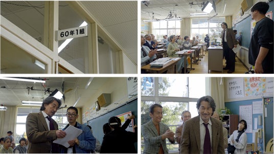 「今回のCM撮影ですが、自分が思っていたよりも、とても楽しい撮影になりました。同年代のみんなが教室に集まったことで、昔の子供時代の教室を思い出しました。黒板とかチョークの匂いとか、そういうのが懐かしいなと思って撮影していました。教室全体に、出演した男女の皆さんと同じ『クラスの仲間』のような雰囲気を感じることができたのは、僕が予測していなかった感じですね。60歳を過ぎた同級生のみんなが集まった教室で、小学生当時のことを思い出しながら「同窓会」をやっているような感じは、不思議な感覚でした。僕がNG出してもみんな笑ってくれるし、誰か1人ちょっとセリフを噛んだりするとみんなが笑うので、とてもリラックスしていましたね。そういう現場って意外とないんですよね。だからやっぱり、同年代の人間がこういう教室で集まること、その画自体がとても面白かったと思っています。」
