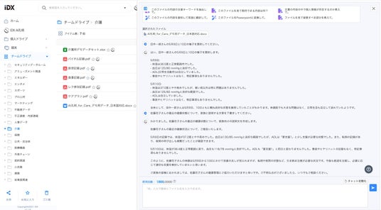 「AI孔明(TM) on IDX for Care」画面キャプチャ