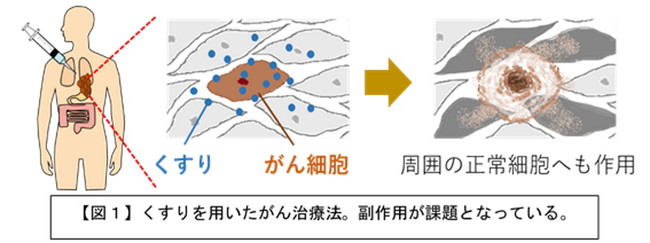 細胞を死滅させる技術は、がんの治療に利用されています。これまで、細胞を死滅させる方法としては、主にくすり(薬剤)が用いられてきました。しかしながら多くのくすりは、目的のがん細胞だけでなく周囲の正常な細胞にも作用してしまい、投与によって毒性(副作用)を引き起こしてしまうという課題がありました。