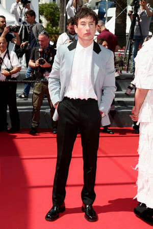 バリー・コーガン(Barry Keoghan) は「バード (Bird)」のプレミアでバーバリーを着用。ゲイル色にブラックカラーのシルクブレンド テーラードジャケット、ブラック ウール テーラードトラウザーズ、ブラック レザー ダービーシューズを合わせています。