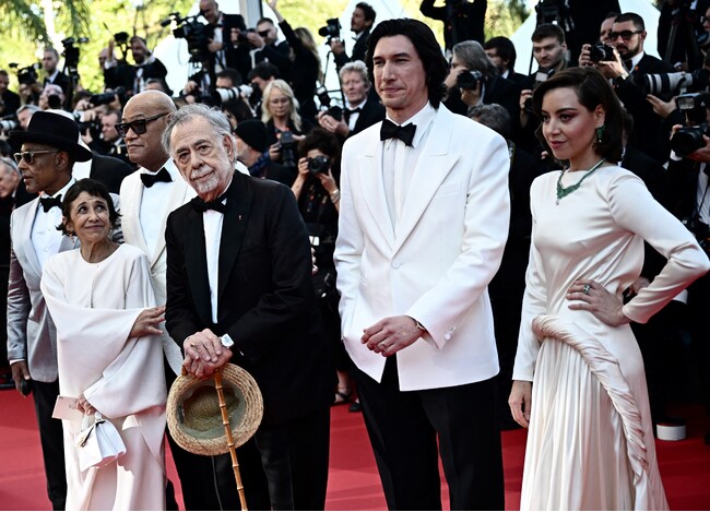 アダム・ドライバー (Adam Driver) は「メガロポリス (Megalopolis)」のプレミアで、ホワイト ウールシルク タキシードジャケット、ホワイト シャツ、ブラック ウール テーラードトラウザーズ、シルク ボウタイ、ブラック レザー シューズを着用しています。