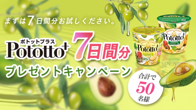 ※「Pototto+ オリーブオイル×ハーブ&ソルト味」・「Pototto+ アボカドオイル×アボカド&チーズ味」をあわせて7個をセットにしてプレゼントします。