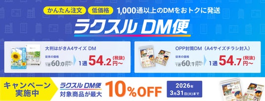 本刷新を記念して、ラクスルDM便プランが最大10%オフになる特別キャンペーンを、期間限定で実施いたします。