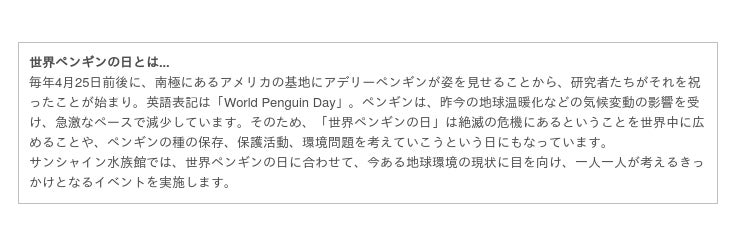 期 間:世界ペンギンの日編:4月16日(金)~4月25日(日)