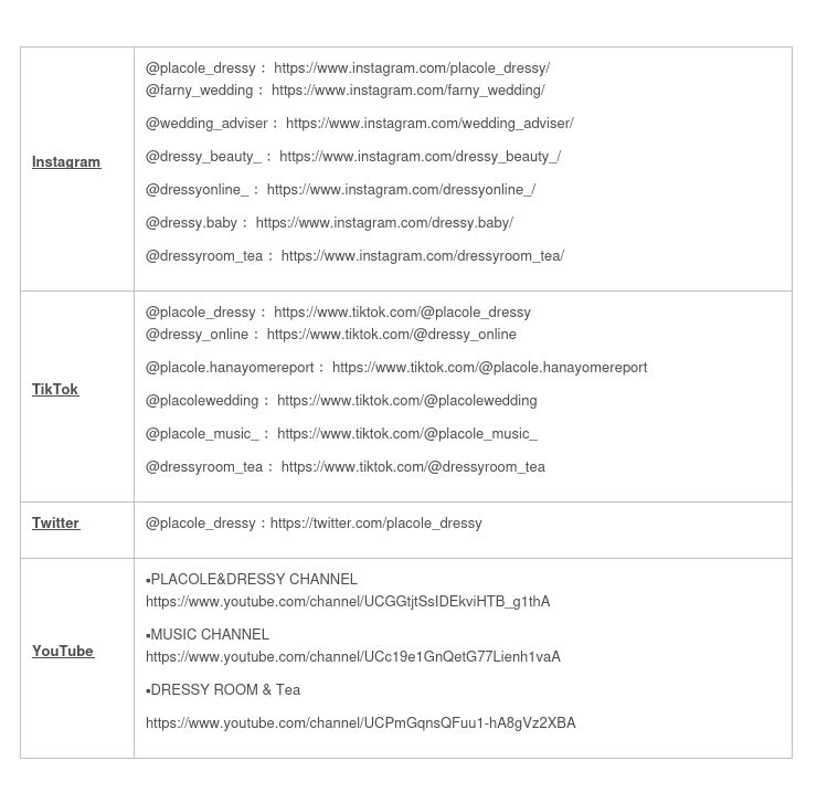 ▪PLACOLE&DRESSY(プラコレ&ドレシー)IOS:https://apple.co/3JraLIz / Android:https://bit.ly/3FaQTH5▪PLACOLE WEDDING (プラコレウェディング)