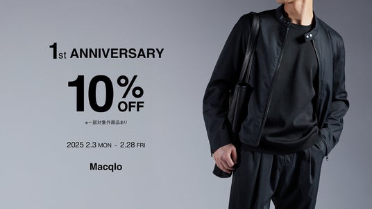 この度、2月3日(月)11:00から2月28日(金)の間、「Macqlo 1st ANNIVERSARY」を開催します。Macqloの公式オンラインストア・公式ショップにてMacqloのアイテムが全品10%OFF(※一部商品除く)でお買い求めいただけます。