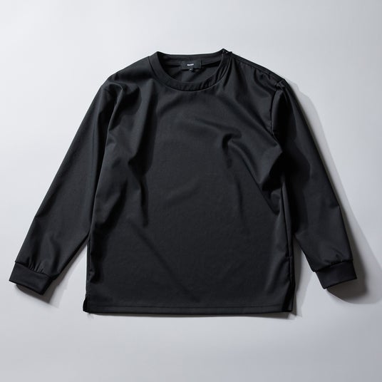 特徴:独自開発素材「ultimex」を使用した長袖Tシャツ。体型を拾いにくい、リラックス感のあるオーバーシルエット。肩口ファスナーで着脱をイージーに。ストレッチ・撥水・速乾・ウォッシャブル。