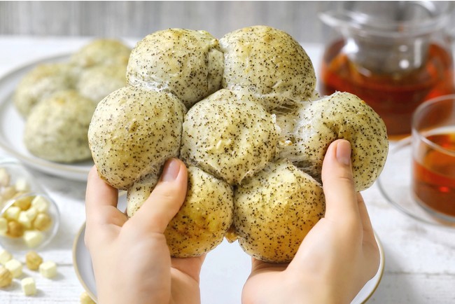 シリーズ展開第7弾の9-10月限定商品は、アールグレイの茶葉とヘーゼルナッツ、クリームチーズを生地に練り込んで焼き上げました。残暑の時期を涼やかに彩る、京生ちぎりパンの中でも抜群に香り高いフレーバーです。