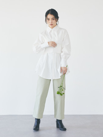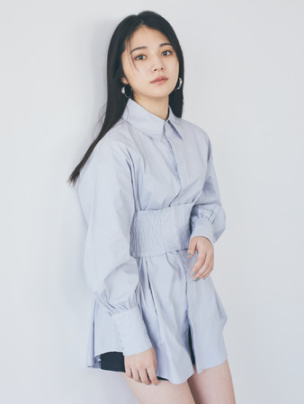 ベルトでスタイルアップできるように、こだわりました。少しオーバーサイズのシャツにベルトをつけると一気にオシャレ感が増し、着やすいのかなと思います。フワッとしたボリューム袖を意識したので、二の腕などが気になる方でも着こなせると思います!パンツ合わせもおすすめです!